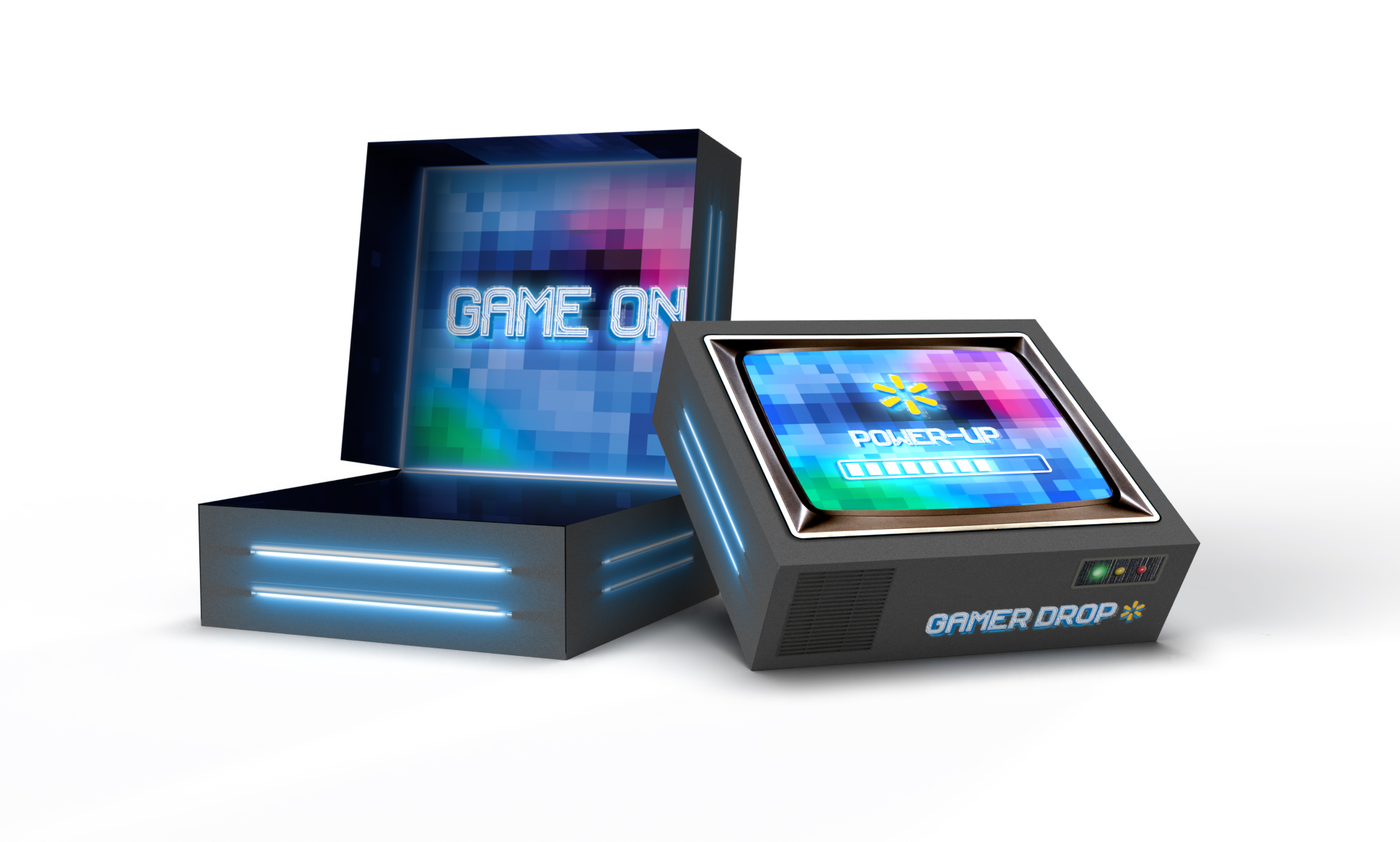 The “Gamer Drop Box” had a few swag items to accompany the multipage handout. Partners included EA, XBOX, Nintendo, and Playstation. I was integral in creating the program logo and design of elements for the event and design of the box which was made to look like an old console/RCA TV glitching out with a neon glow.