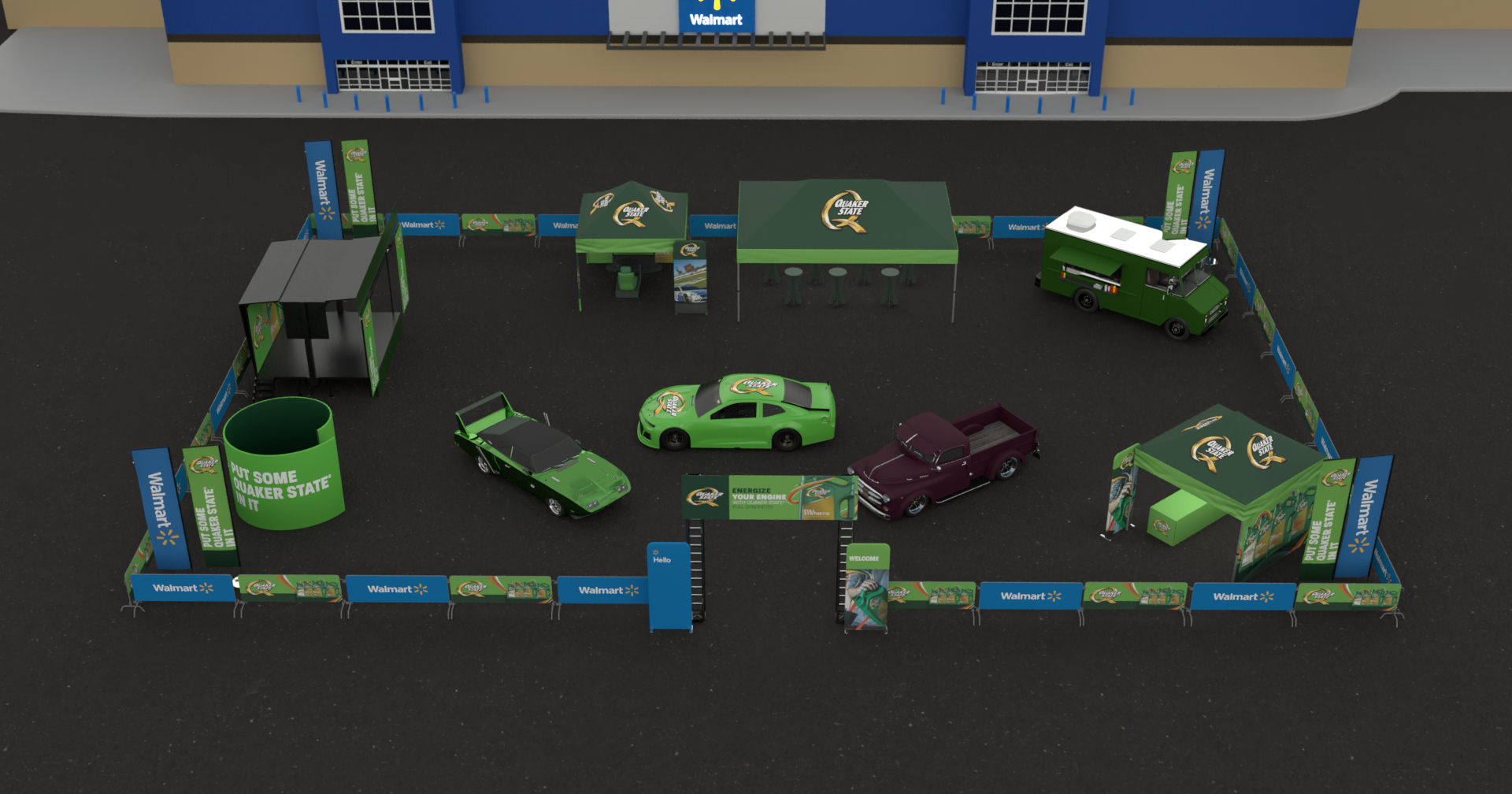 Developed a fun and festival-like atmosphere at Walmart centered around Quaker State, NASCAR and car culture. Drove awareness for the all-new “Ultimate Protection” Quaker State Oil, as well as support for the Quaker State 400 in a captivating approach.
